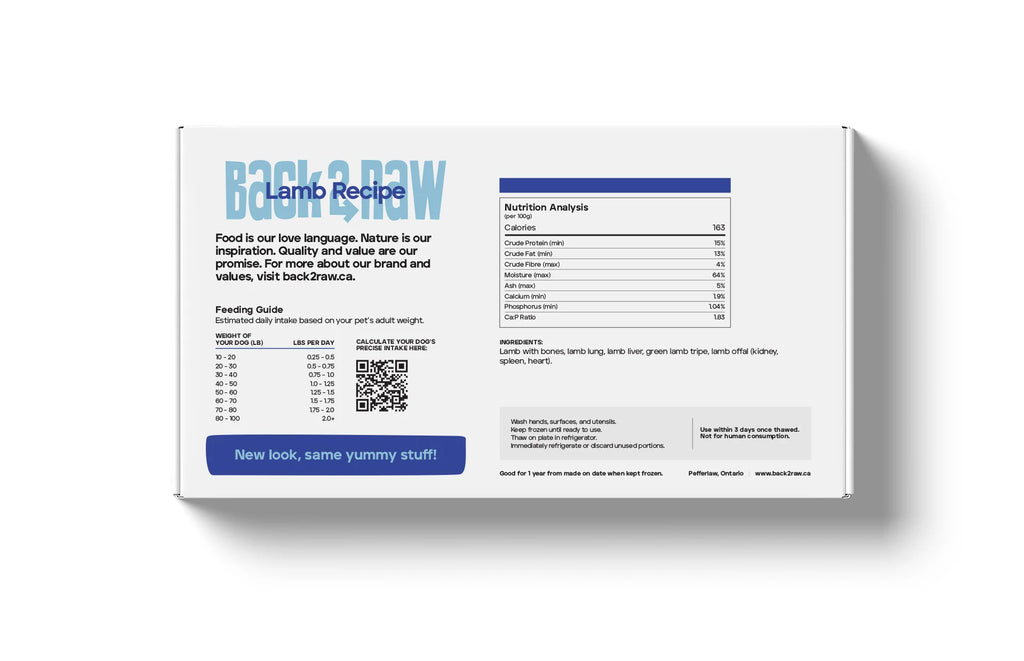 Basic formulas by Back2Raw are complete with bone, meat, organ and tripe! Basic Lamb is made with 100% Lamb meat, organs and green lamb tripe with no added vegetables. Great choice for dogs with allergies!