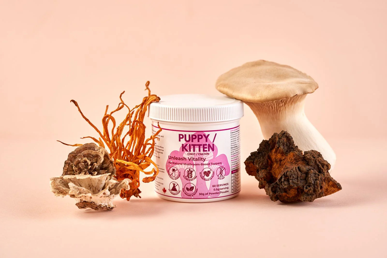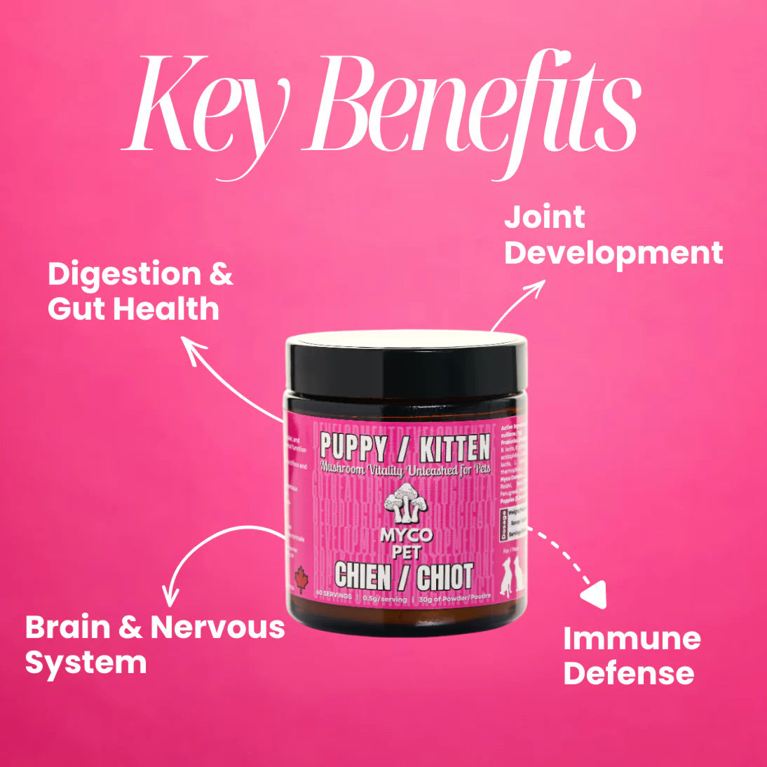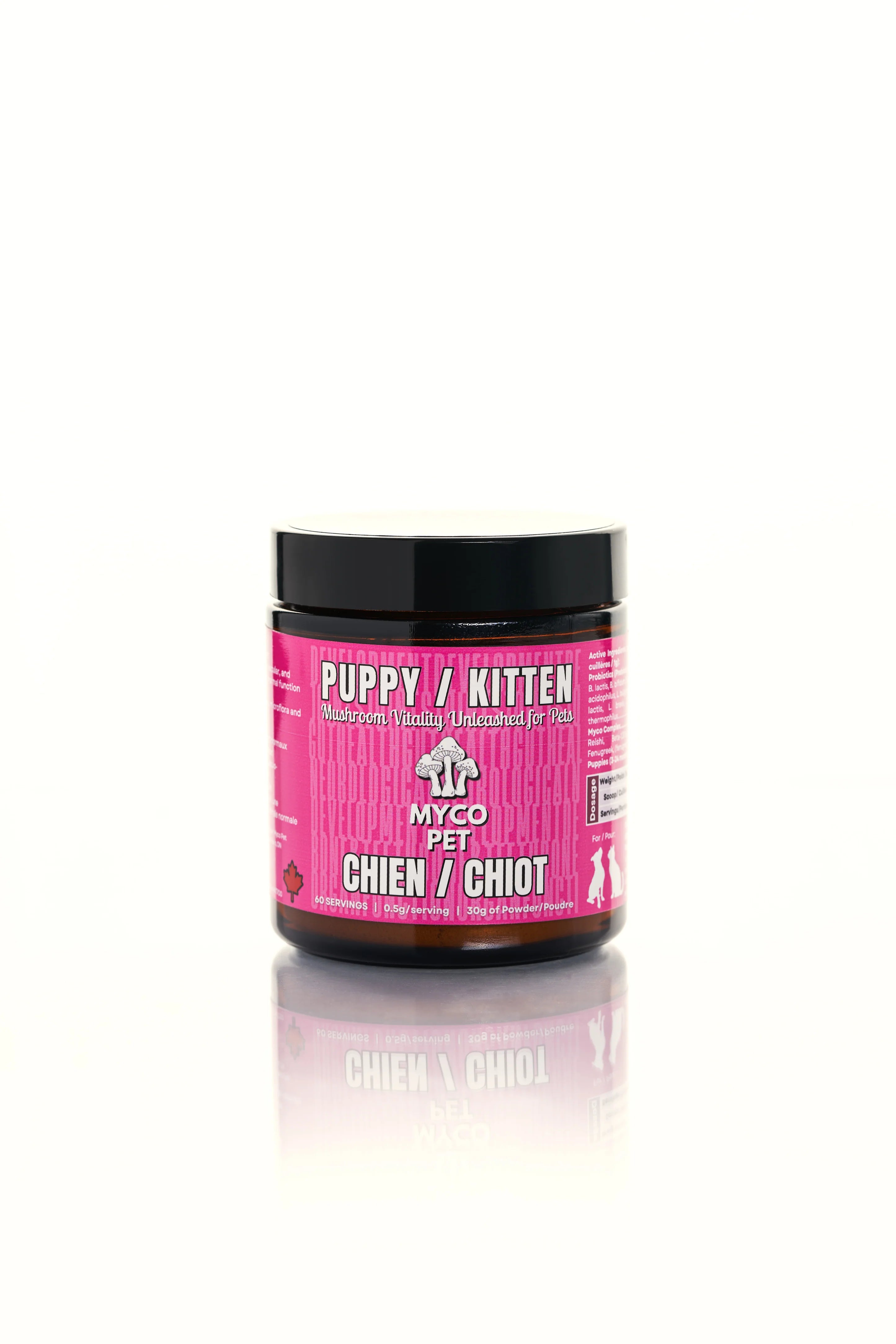 Myco Pet Puppy / Kitten+ is a gentle, foundational wellness supplement designed to support healthy growth, digestion, immunity, and development during your pet’s most important life stage. This functional mushroom blend helps build strong immune defenses, support gut health, and promote balanced development as puppies and kittens grow.