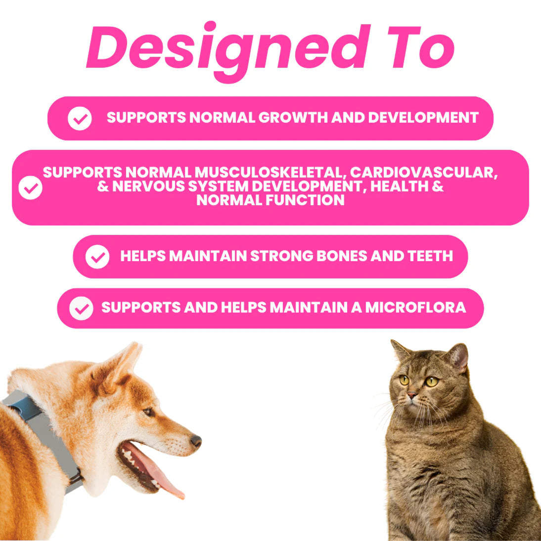 Proper nutrition during the early months lays the groundwork for strong bones, muscles, and organs. This supplement supports nutrient absorption and overall development during your pet's most important growth phase.