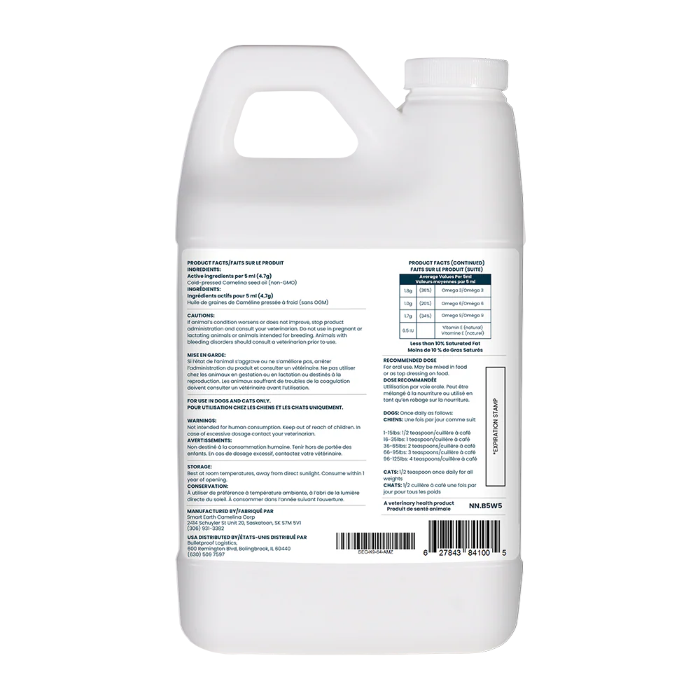 Camelina oil offers what many pets require in a healthy diet: Easily digestible Omega Fatty Acids.